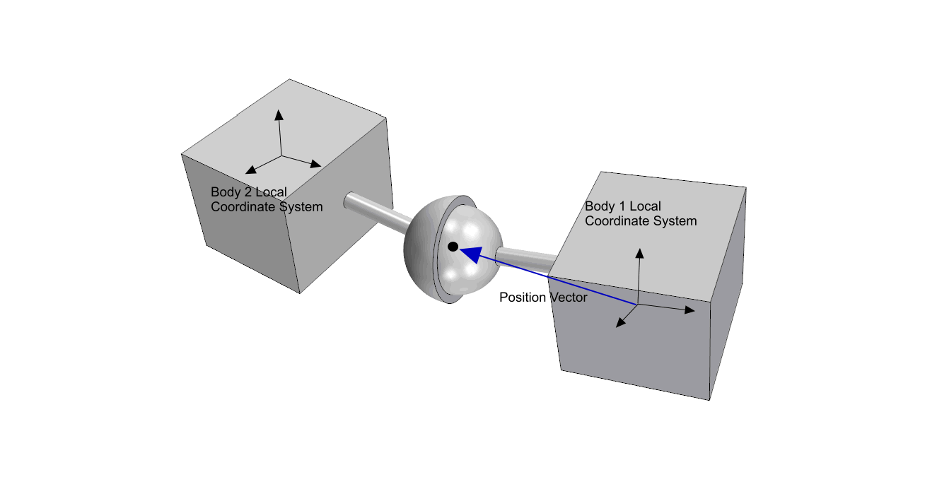 The following diagram illustrates the concept of how a spherical joint is modeled in Simcenter STAR-CCM+: