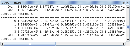 继续迭代时,输出窗口中会显示额外信息。 常规残差输出窗口中的嵌套内容为 AMG 残差。 通常,残差幅值不如单一迭代中执行的迭代次数重要。 一般而言,该数值的推荐范围为 2 到 5 之间。