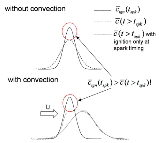 which should be non-zero after spark ignition only if the flame kernel is convected,