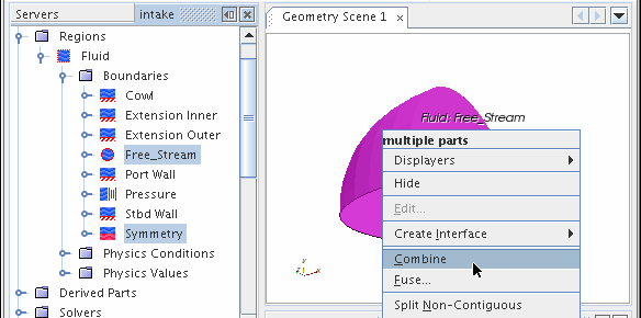 根据所选的对象类型,右键单击某个选定对象会激活某些弹出菜单选项。例如,右键单击场景中的两个选定边界之一可以组合这些边界。