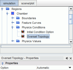 设置重叠拓扑 默认情况下,将激活自动重叠拓扑。此选项适用于大多数情况。仅在特定情况下,拓扑算法才会失败,并且必须选择适当的重叠拓扑方法。有关典型的应用场景,请参考重叠拓扑。 要设置重叠拓扑: 选择区域 > [区域] > 物理条件 > 重叠拓扑节点,然后将选项设为所需的重叠拓扑方法。 请参见重叠拓扑属性。 如果将选项设为活塞或方向,则选择 [区域] > 物理值 > 重叠方向指定节点,然后选择方向。 请参见重叠方向指定属性。