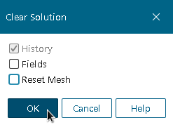 在清除求解对话框中,禁用场和重置网格,然后单击确定。