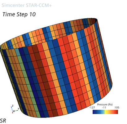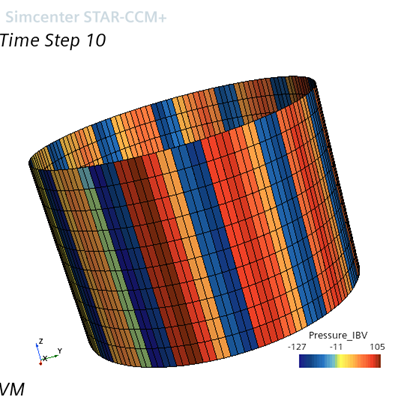 Volume/surface representation Corresponding solution history representation The volume/surface representation shows a higher mesh resolution because it includes the reconstructed geometry of an interface boundary. The solution history representation does not include that interface boundary because the associated interface, being metrics-based, has no vertices and therefore could not have its geometry exported to the solution history. Instead, what you see with the solution history representation is the original faces of this boundary before the creation of the interface.