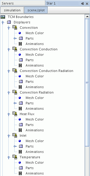 单击热传递系数按钮时,可创建一个标量场景,其中显示所有固体区域和边界的热传递系数。 这会自动创建具有典型设置和边界的热传递系数场景,从而加快求解监视和后处理要求。