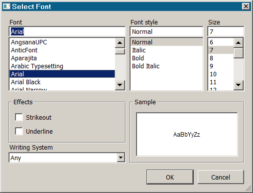 在 Select Font(选择字体) 对话框中,对字体设置进行适当的更改。