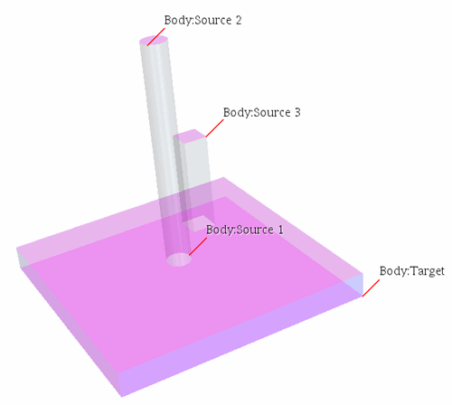 在源表面 - 源表面对话框中,至少选择一个表面以表示源表面。对于 M-1 扫掠,可以使用处于不同扫掠级别的非连续源表面。