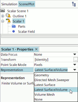 在任一情况下,列表中的项都是特定用途的场景的快捷方式。例如,几何选项可创建一个场景,其中的几何显示器已配置为包含在最新可用描述中使用的所有几何部件。如果尚未生成网格,则显示器将包含几何部件,并指向部件的初始网格化表面。 -