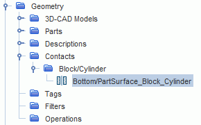 表示分割零部件表面对的原位零部件接触显示在模拟树中:
