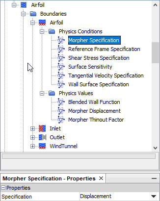 对于风洞内翼型的模拟,仅当翼型的边界处节点发生变形时翼型才受到伴随形状优化。周围的风洞边界保持固定。因此,将翼型定义为位移边界,风洞定义为固定。对于使用位移作为变形指定的边界,可以根据伴随求解输入计算出的位移,以在以后实现形状优化。