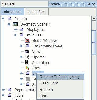 如果要将所有照明属性恢复为其默认值,右键单击照明节点,然后选择恢复默认照明。