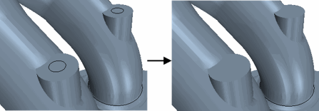 下图显示移除冗余拓扑之前和之后的 CAD 几何: