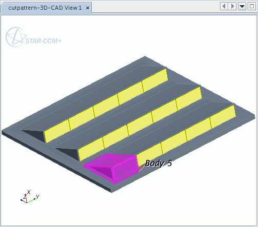 创建线性模式剪切 线性模式剪切与线性模式的行为方式相同,不同之处在于,种子体定义的模式用来从现有体上移除材料。 要使用线性模式剪切,至少需要两个体。 要创建线性模式剪切,请参见创建线性模式。 下面是线性模式剪切的示例。