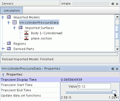 显示时间由瞬态模型中的滑块控制,这会自动更新场景。
