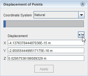 - 在 Freeform Surface(自由表面)面板打开的情况下,创建一个点并将其放在自由表面上,或单击现有的点,以显示位移值。