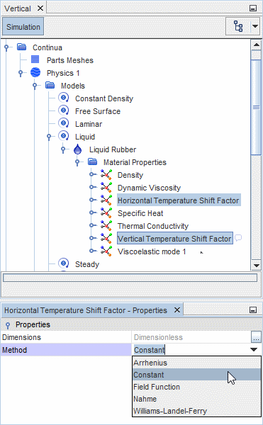 - 当粘弹性模型处于活动状态且其平方根共形属性为打开时,这是非等温模拟所必需的方法。然后,必须将该常数的值设为 1。如果平方根共形属性关闭,则允许使用任何常数值。