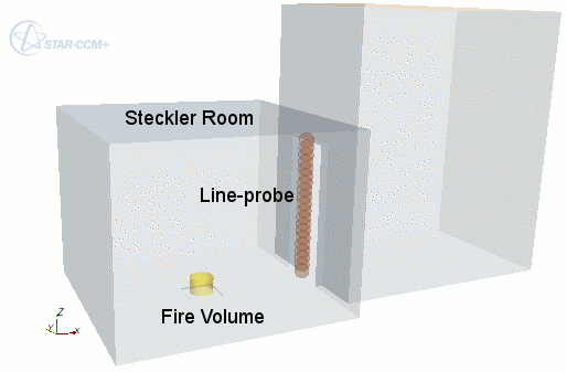 本教程演示烟火向导。几何体和火焰设置与报告的 Steckler 类似,包括辐射和壁热吸收。该设置允许与实验数据进行初步比较。
