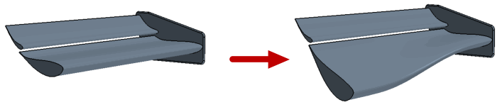 自由形式表面变形允许您更改基础 CAD 表面的形状。在这里,您可以使用自由形式工具来更改赛车后翼上的下部元素的形状。