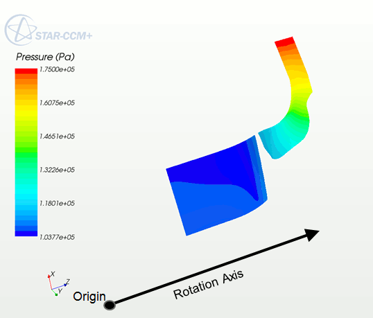 使用子午面投影转换 该转换是零部件的点到 (z,r) 平面的简单投影。 它只需要其属性的两个矢量:旋转原点和旋转轴。以下示例使用了子午面投影转换: 旋转轴为 [0, 0, 1](与 z 轴对齐)。 原点位于表面上游 [0, 0, 0] 处。 以下屏幕截图显示俯视 z 轴。 该转换将零部件映射到 (x, y) 轴。