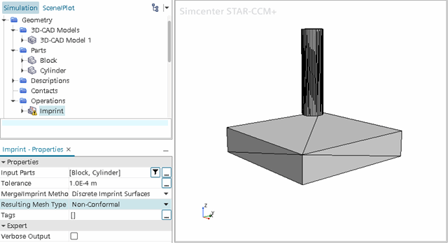 通过 Simcenter STAR-CCM+ 可以对零部件执行非共形压印。非共形压印提供了一种高效压印零部件的方法,不需要在非必要时耗费时间来共形压印 CAD 零部件。