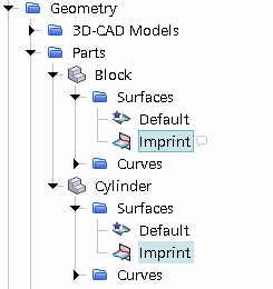 在非共形压印过程中,会在接触零部件上创建分割表面对,而不会改变单个零部件。