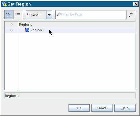区域属性可激活对象选择器以从可用列表中选择区域。不能使用此方法创建新区域。