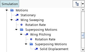 俯仰运动的坐标系将根据父扫掠运动移动。为了反映这一点,Simcenter STAR-CCM+ 自动设置以下属性:运动节点 属性 设置 Wing Sweeping(机翼扫掠) 受管理的坐标系 Wing Pitching(机翼俯仰) 坐标系 将在下一节中定义俯仰运动的剩余属性。