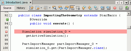 通过将 Simcenter STAR-CCM+ 连接到 IDE,可以将宏执行到任何行,然后单步调试各个命令加以了解。将 IDE 附加到 Simcenter STAR-CCM+ 之后,可以先在宏中创建一个或多个断点,然后再运行。