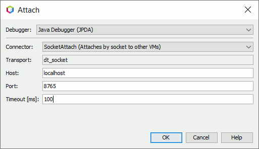 Simcenter STAR-CCM+ 可直接将消息传递到运行客户端的 Java 虚拟机。可以使用此功能通过指定端口将 NetBeans 附加到 Simcenter STAR-CCM+ 的实例。在以下示例中使用端口号 8765,但可使用任何未使用的端口号。