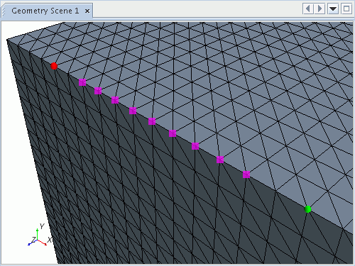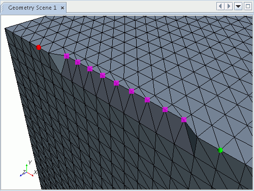 进行拾取时,点的坐标将添加到投影节点原位对话框中适当的字段中。 拾取点后,可以手动更改其坐标以调整其位置。 这些坐标相对于当前坐标系。 因此,更改坐标系会使点的位置相对于新的坐标系重新定位。 点在图形窗口中使用颜色编码的球体表示,点位置更改时将自动更新。