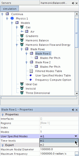 用户指定的模式表应仅包含有关叶片排模态索引(m1 和 m2)的信息,因为节径 (N) 和叶片排频率(omega1 和 omega2)由现有的模拟属性定义。