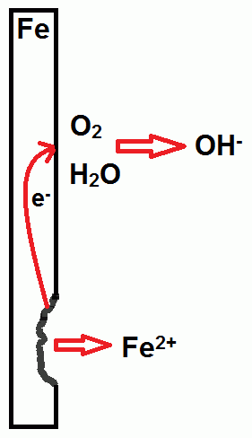 金属原子失去电子,成为可溶于电解质的离子。 金属失去电子的反应称为氧化 — 阳极反应就是一个示例。 以下反应显示了铁的氧化: