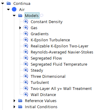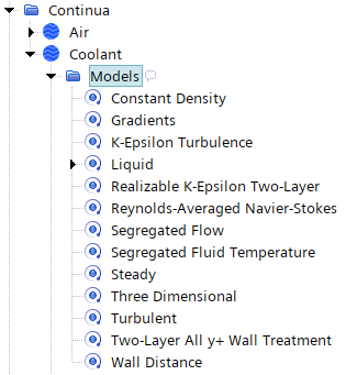 - 要指定冷却液的物理模型,右键单击连续体节点,然后选择新建物理连续体。