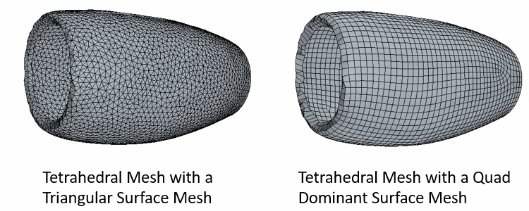 下面显示了使用三角形或四边形主控面网格的四面体核心网格示例: