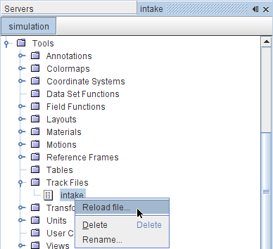 如果外部文件在读取到 Simcenter STAR-CCM+ 中之后已修改,可以轻松更新轨迹文件对象:
