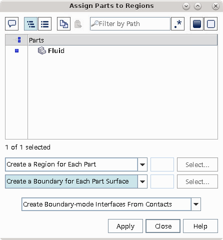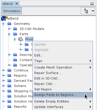 将几何零部件分配给区域。入口和出口表面已经在 3D-CAD 中重命名,并且被自动分配给独立的边界。
