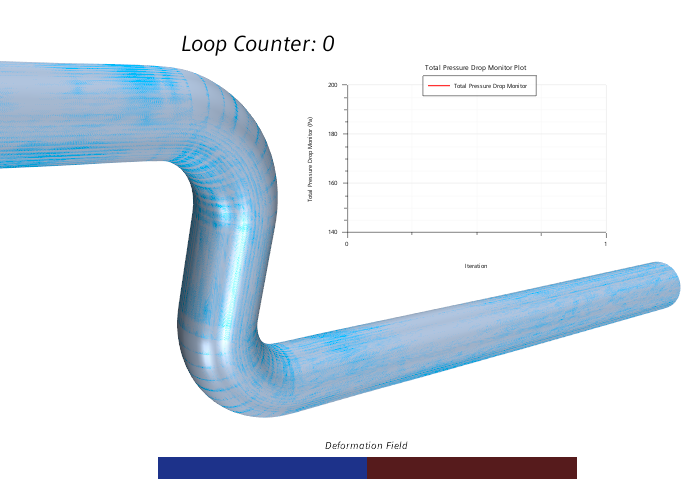创建一个矢量场景,以显示优化几何上相对于原始几何的变形场矢量。同时在场景中添加总压力图作为图像注释以关注改进。