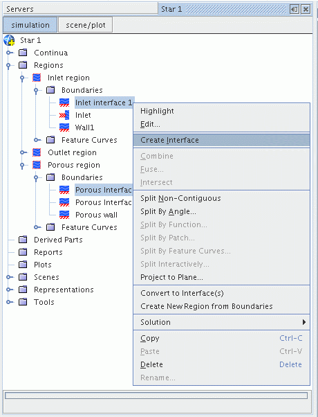不要将创建交界面的操作与将边界转换为交界面混淆,这两项操作相似而又不同,后者主要用于网格化目的。在后一种情况下,先复制属于面网格的单个(通常是公共)边界,然后在原始边界和副本之间创建一个交界面,主要目的是为网格化定义多个区域。