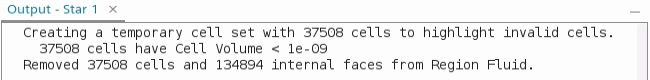 - 对条件满意时,单击移除以移除网格单元。如果不希望移除网格单元,只需在不选择移除的情况下关闭该对话框。 输出窗口将显示结果: