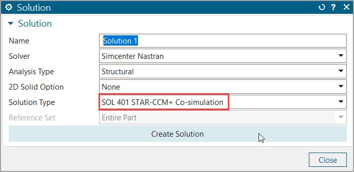 将求解类型设为 SOL 401 STAR-CCM+ 协同仿真。