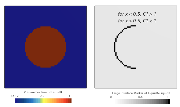 - Specifies the thickness of the Large Interface Marker Band which represents the large scale interface. The default value is 2 cells.
