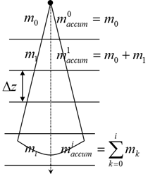 - 为从喷射点到第 个间隔的累积质量。