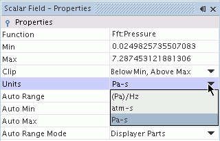 Simcenter STAR-CCM+ 将计算 FT 场函数的维度,并基于这些维度提供建议单位列表。