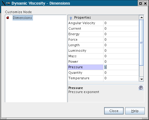 对于模拟树中的各个对象,单击维度属性的属性自定义工具 () 可打开维度对话框。