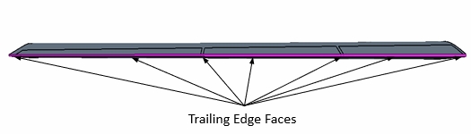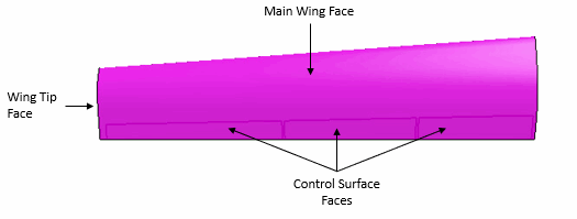 这将选择机翼表面上的所有十五个面。选择翼面时,切记要包括主机翼、控制表面的顶部和底部表面、沿机翼尾缘的所有面以及翼尖面。请勿选择翼根面。