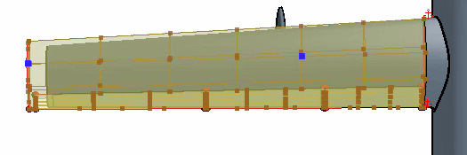 要生成光顺变形,使用较少量的控制点。如果使用太多控制点,则表面可能会过约束并导致波状变形,而且在极端情况下会导致自由成型操作失败。