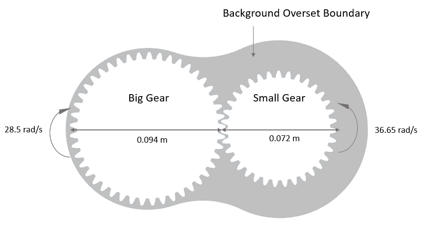 域是不包含流体边界的封闭系统。齿轮的运动是通过使用重叠网格进行解释的。齿轮与重叠背景网格边界交界。油和空气建模为不可压缩液体和气体。多相混合物使用 MMP-LSI 通过 ADIS 方案对清晰的交界面进行建模。