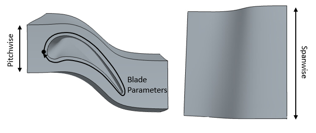 涡轮机网格操作需要设置可以沿叶片轮廓、跨距和节距方向定义网格分布的多个参数: