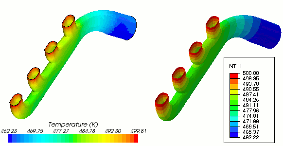 在运行协同仿真之前,先分别运行流体模型和固定模型的单独案例以便确定这些模型各自收敛,这是很好的做法。在本例中,可使用 INNER 表面的液膜表面条件(*SFILM)以及对散热器温度和液膜系数的估测恒定值来运行 Abaqus 模型。同样,在 Simcenter STAR-CCM+ 中,可使用对流体/壁面边界的估测温度来运行模拟。