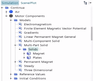 残余磁通量密度是移除外部磁场后,永磁体内残留的磁场。为简单起见,此模拟使用相同的物理连续体电机组件为板和磁体建模。要对板停用永磁模型,您需要将板的残余磁通量密度设为零。