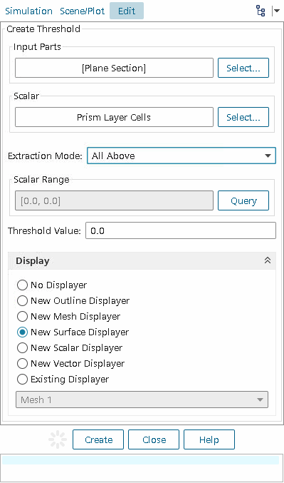 阈值默认设为零。但是,如果标量设为棱柱层网格单元,则无需指定阈值,因为它会自动设为显示所有棱柱层网格单元。